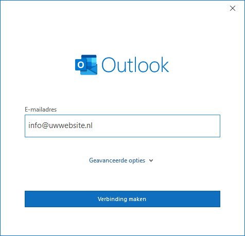 - Voer uw e-mailadres in (bijv. info@uwwebsite.nl). En klik op Verbinding maken.