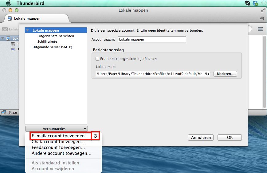 - Klik linksonder op Accountacties en klik daarna op E-mailaccount toevoegen….