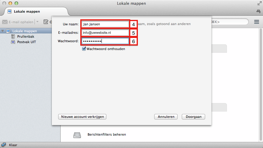 - Bij Uw naam: vul uw naam in, deze wordt getoond als afzender bij uw e-mails.