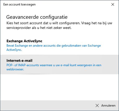 - Klik op Internet e-mail.