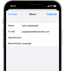 - Vul een voor u herkenbare beschrijving in voor dit e-mail account.