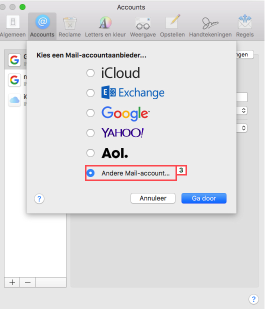 - Selecteer Andere Mail-account… en klik op Ga door.